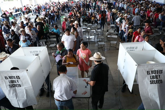 Desde temprana hora, comuneras y comuneros acudieron a registrarse y emitir su voto en un ambiente de tranquilidad, respeto y participación activa. La votación se llevó a cabo de forma ordenada, y el conteo de votos se realizó públicamente, en presencia de las autoridades tradicionales, representantes de la Comisión de Enlace y personal del IEM, quienes supervisaron el cumplimiento de cada etapa del proceso.