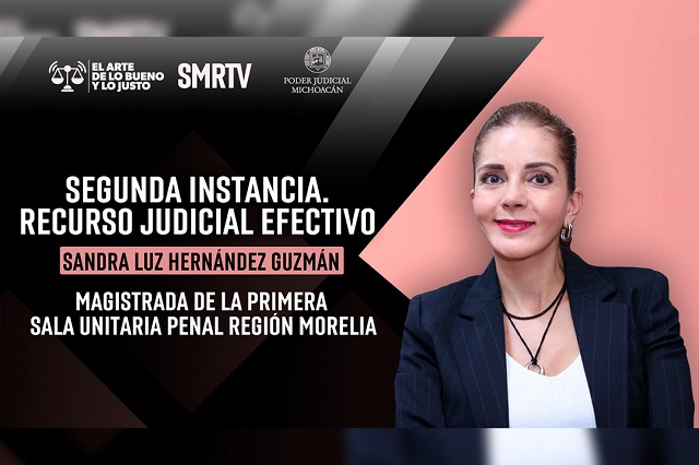 Morelia, Michoacán, 22 de diciembre de 2025. “La segunda instancia es fundamental porque brinda certeza jurídica a las partes inconformes con una resolución judicial. Quienes impartimos justicia conocemos el impacto que estas tienen en la vida de las personas; por ello la importancia de la revisión por un órgano superior”, así lo afirmó la magistrada de la Primera Sala Unitaria Penal Región Morelia, Sandra Luz Hernández Guzmán, en la nueva emisión de El Arte de lo Bueno y lo Justo.