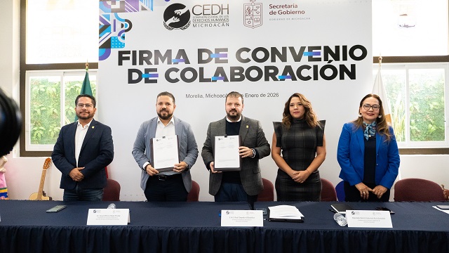 Sumario: La Comisión Estatal de los Derechos Humanos y la Secretaría de Gobierno signaron un convenio de colaboración para fortalecer la defensa, protección y cultura de la legalidad en Michoacán.