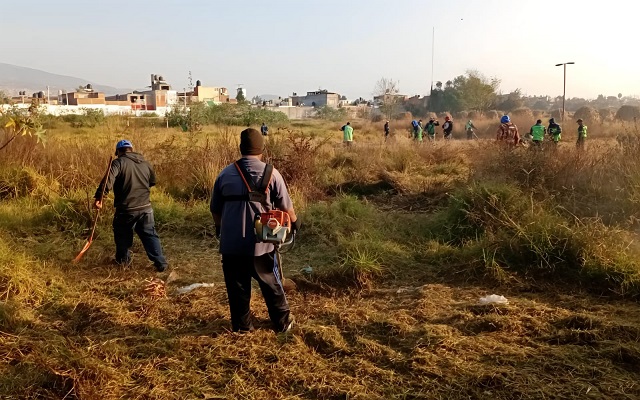 Personal de las Direcciones de Residuos Sólidos y Parques y Jardines, realizaron labores de poda de pasto, limpieza y retiro de vegetación en las canchas y área verde de este fraccionamiento ubicado en el poniente de la capital.