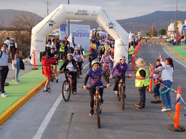 Morelia, Michoacán, 11 de marzo de 2026.- La avenida del Molcajete se llenó de ciclistas para conmemorar el Día Internacional de la Mujer con la “Rodada Púrpura”, que organizó la secretaria de Desarrollo Urbano y Movilidad, Gladyz Butanda Macías.