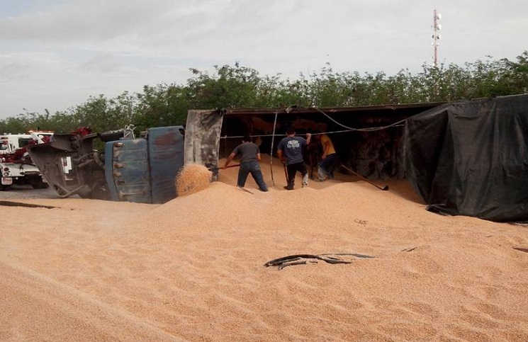 Un tráiler cargado con 30 toneladas de maíz volcó sobre el anillo periférico de esta ciudad, ocasionando el cierre parcial de la avenida por más de dos horas.